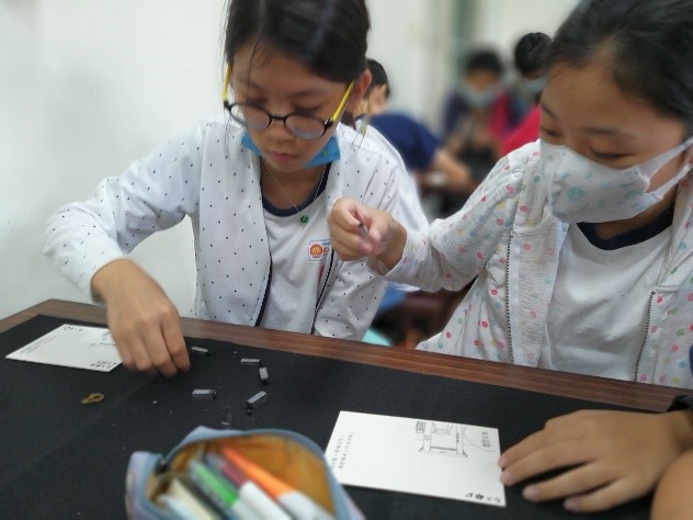 3.學生利用小型鉛字排版盒及印刷機再次進行詩詞創作並印成小書籤,作為自己的收藏與紀念。