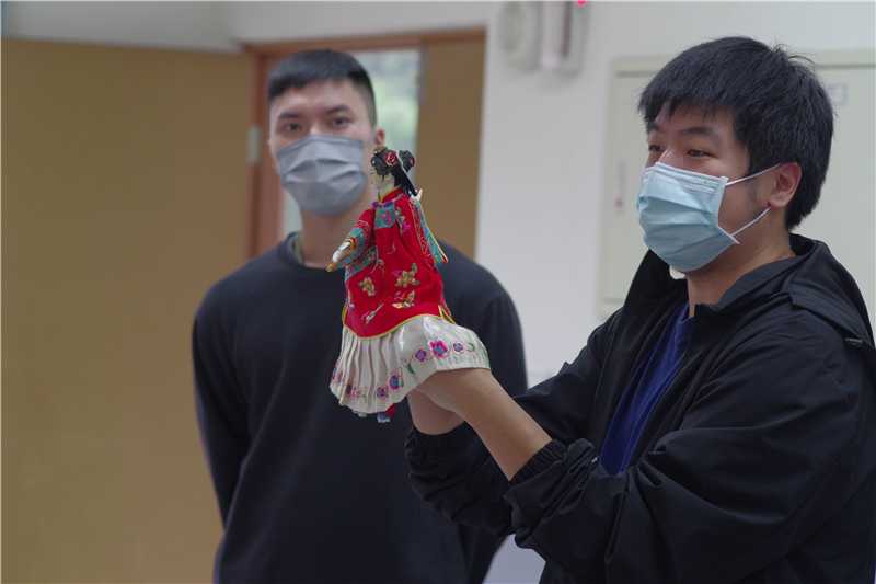 本週課程會向學生示範人聲在布袋戲演出中的各種運用,包含口白、內白、音效、唱曲等,並讓學生實際去練習不同角色及情境應有的聲音特色及變化。團隊也透過學生的練習狀況,來做為成果表演的工作分配依據。