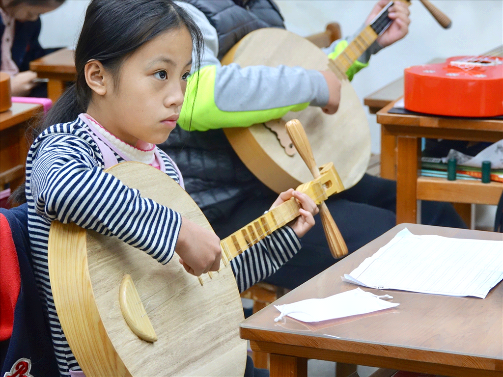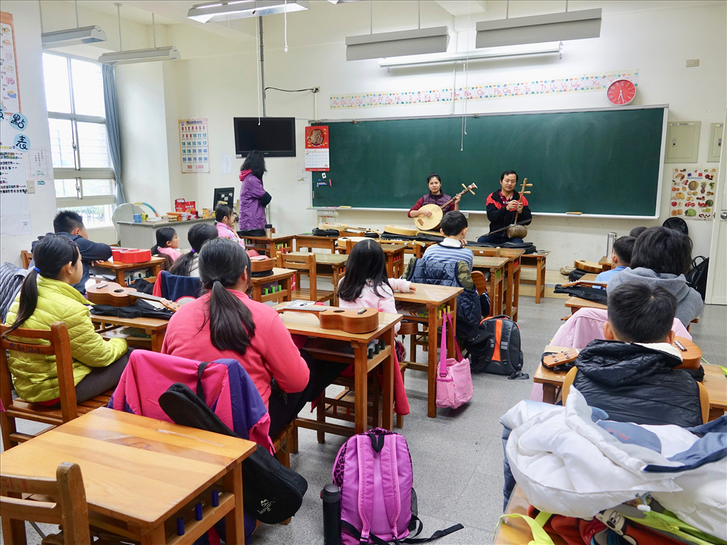 台中市中和國小位於新社區,為教育部定義的偏鄉國小,全校學生約只有 20 人。 學校最大特色為讓學生學習歌仔戲、烏克麗麗等才藝,並積極向外推廣與交流。還曾經 奪下台中迷你小學表演團隊選拔特優獎,2016 年 8 月前往美國參加國際童玩節表演。 因此本計畫擬定教導學生唱唸歌,再教他們用月琴跟烏克麗麗各半,彈奏江湖調,並自 行創作獨一無二的四句聯。