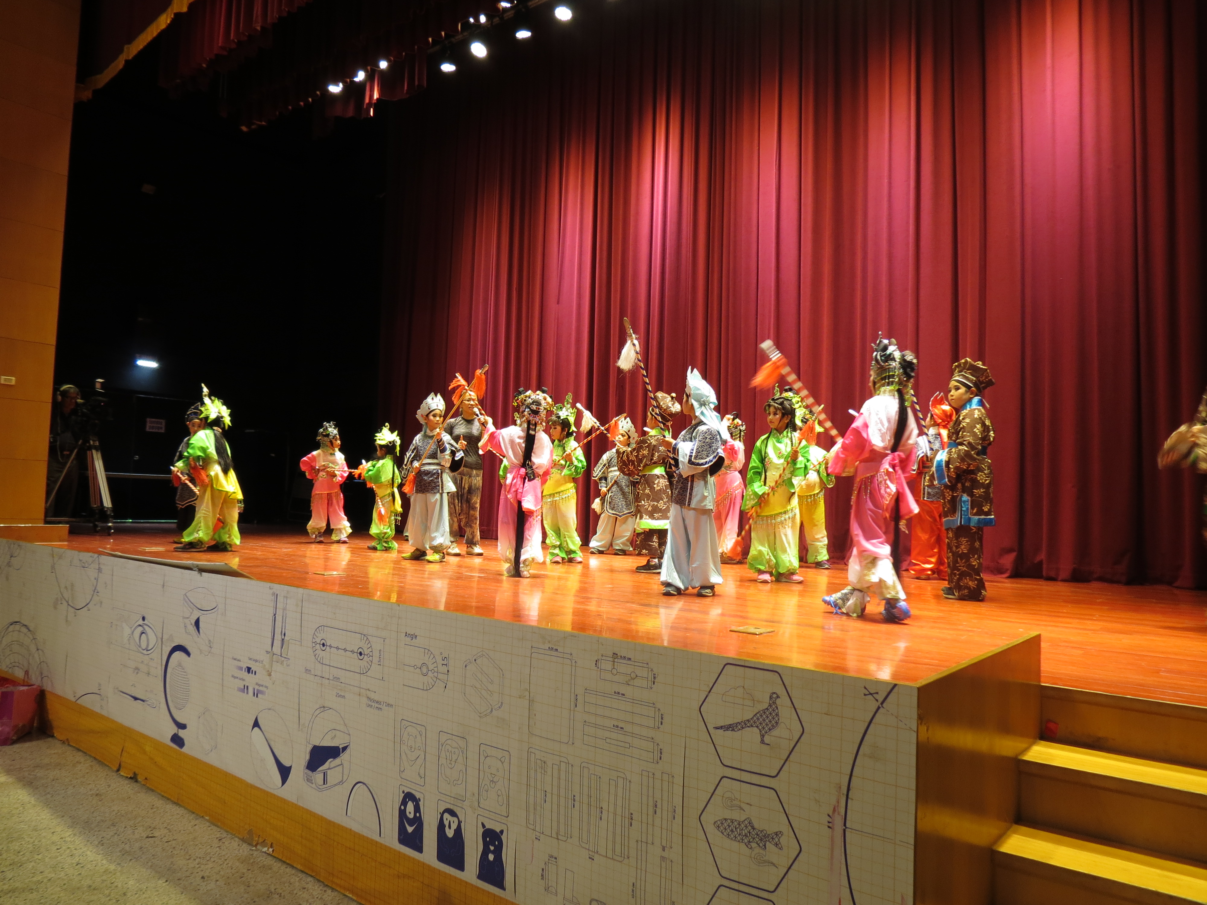 - 讓小朋友觀察及聯想(例如:臉妝與頭飾跟角色的關係 、戲服樣式與角色的關係 、身段手勢與生角或旦角的關聯等),為提升小朋友體驗的興趣,運用有獎徵答、聯想、發表等互動方式
