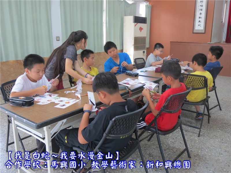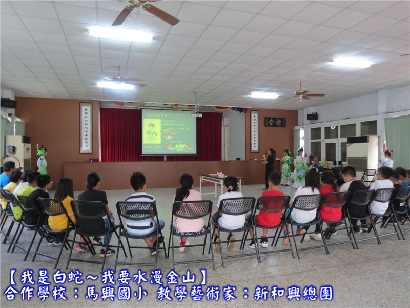 藉淺顯的簡介歌仔戲,創作有趣的【歌仔戲~我是“白蛇”我要水漫金山】課程,透過歌仔戲體驗課程認識與實作,認識歌仔戲這齣家喻戶曉的「白蛇傳」,如:白蛇要水漫金山身段怎麼做、為何要要念咒語、為什麼歌仔戲演出都要唱歌等等,學生自己親身感受演譯劇中角色選擇要如何水漫金山,來表達自己的創新思想想法。 規劃8小時的實地體驗、表演欣賞、實作表演,學生至國立彰化生活美學館遊藝堂成果演出,結合民俗、藝術、音樂、舞蹈,帶領學生找到自己的無限創意能量、體驗傳統歌仔戲之美,並且尊重與欣賞本土文化藝術內涵。