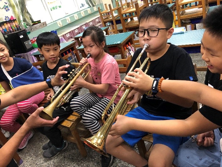高雄市管樂團所設計課程,主要針對從未接觸過管樂的學生,採一個班級約20人的精緻教學,整體課程為期四天,從生活中探索不同聲音、發覺聲音特性、感受聲音的能量開始,進而帶入節奏與合奏觀念、指揮角色,以及如何感受音樂,適時讓學生進行表演,表達自我。接著,實際到表演場館欣賞現場演奏,當天將特別安排學生參觀音樂會的籌備過程(裝臺、彩排、現場設備架設、前臺準備等),會後則由高雄市管樂團的器樂老師近距離指導學生,讓每位學生都有接觸與吹奏樂器的機會。課程主題規劃如下:
