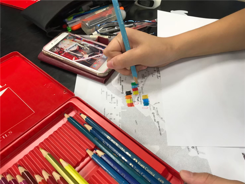 配合美術課色彩學單元,延伸至日常生活運用;以色彩結合導覽來介紹一個場域的色彩符號,將場域中具特色空間建築或是物件化繁為簡,嘗詴以色彩來記憶一個區域的特色之處。