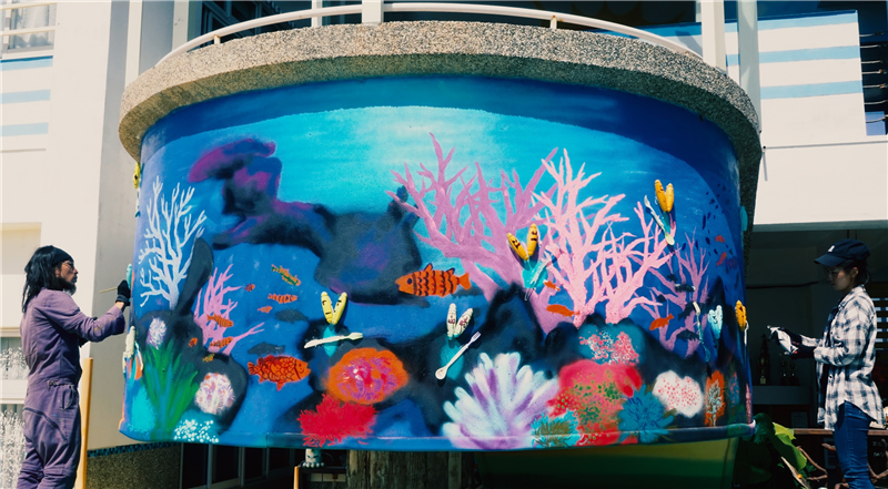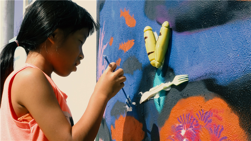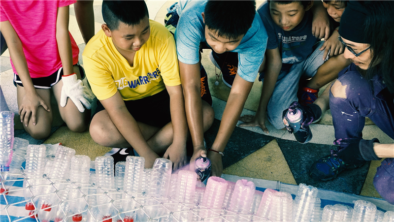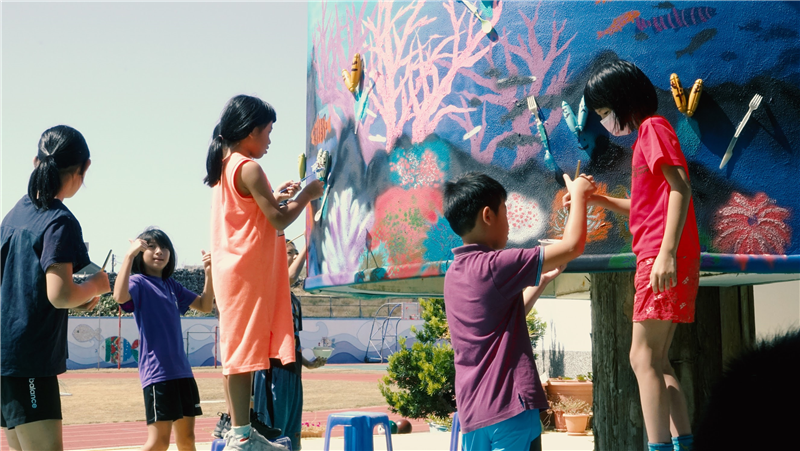 本課程為教學藝術家李健銘、王邑熏 為關注海洋議題所設計的教學計畫 以『共生』為主題,藉由街頭塗鴉教育來引導學生來認識環境與人的關係。